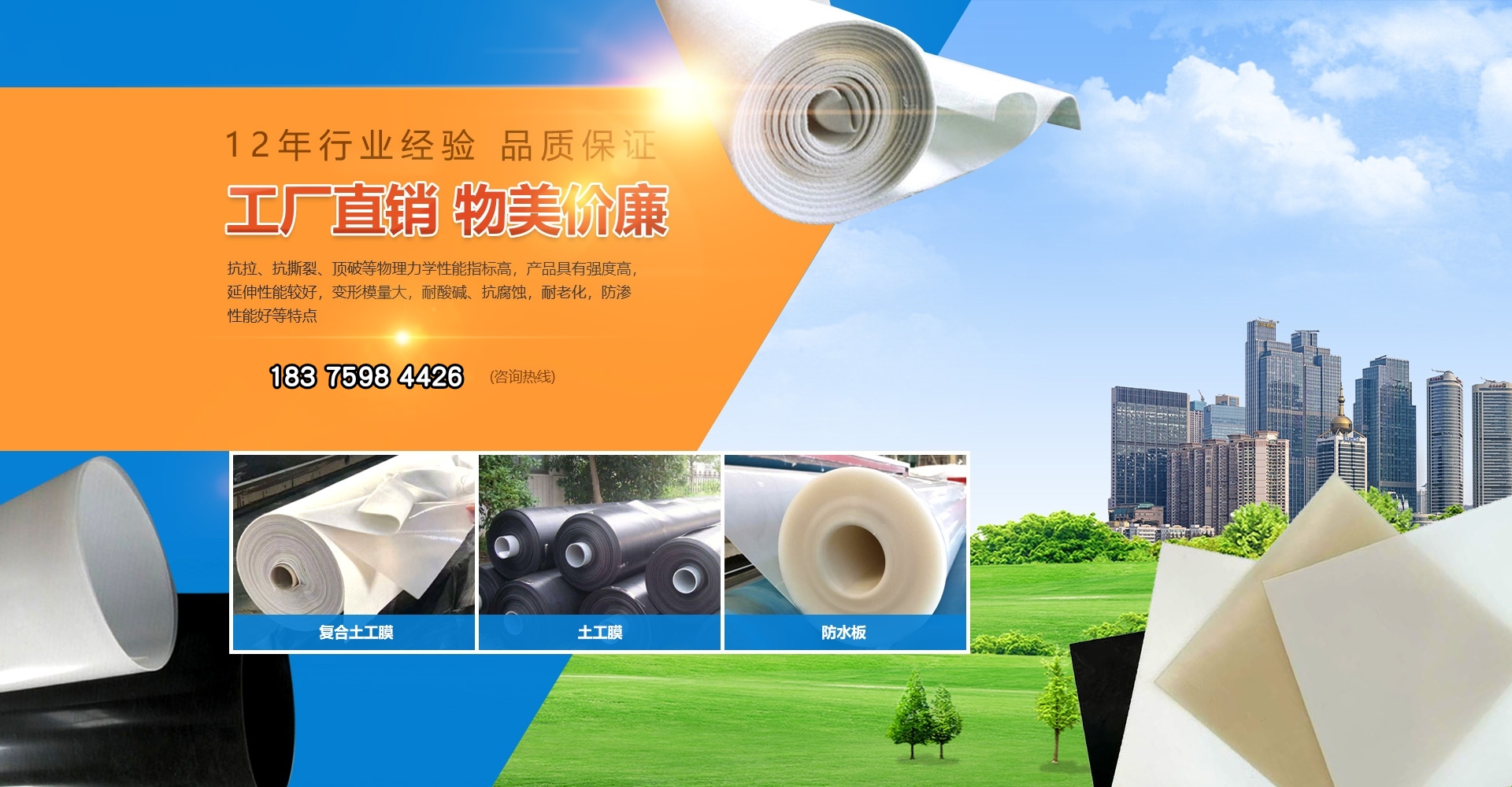 復合土工膜分為一布一膜和兩布一膜,寬幅4-6m,重量為200—1500g/平方米,抗拉、抗撕裂、頂破等物理力學性能指標高,產(chǎn)品具有強度高,延伸性能較好,變形模量大,耐酸堿、抗腐蝕,耐老化,防滲性能好等特點。能滿足水利、市政、建筑、交通,地鐵、隧道、工程建設中的防滲、隔離、補強、防裂加固等土木工程需要。常用于堤壩、排水溝渠的防滲處理,以及廢料場的防污處理。